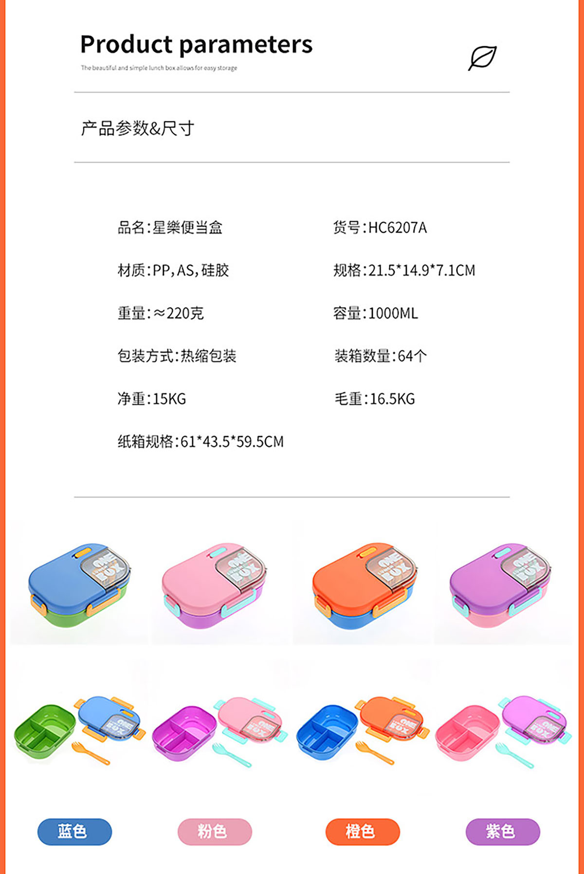 Size: SWY-HC6207A(三格PP款):215*149*71mm/1000ml