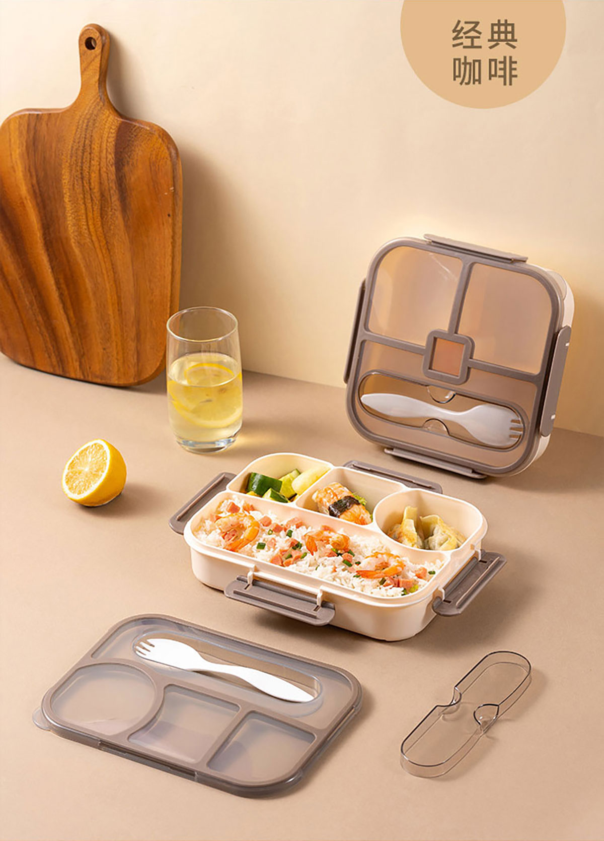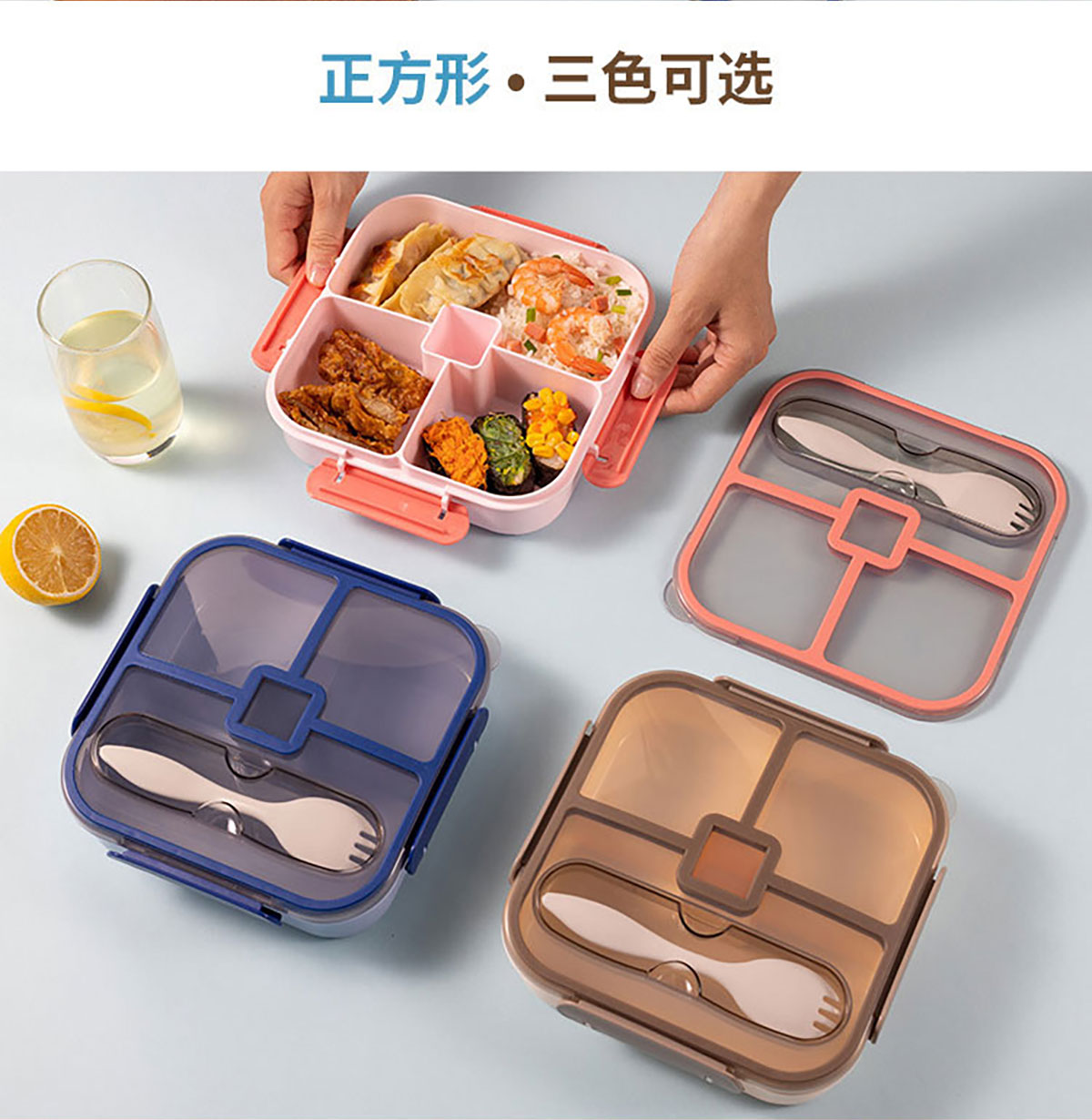 悅味長(zhǎng)方形/方形密封四格飯盒1100ml